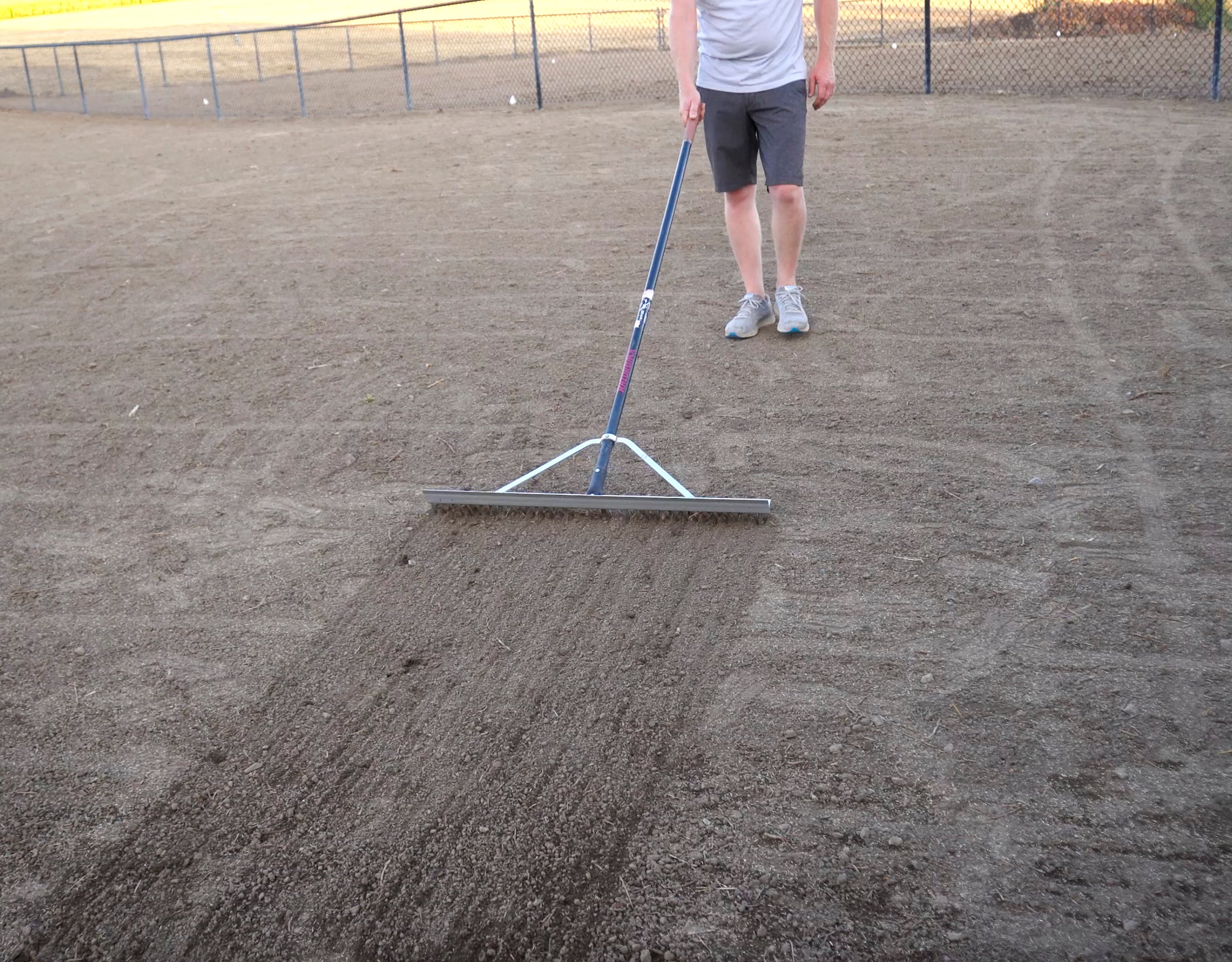 - If the soil is very “fluffy” or loose, water the soil a bit to help compact the surface. A roller may also help. (When walking on the soil your shoes should not leave more than a 1” deep depression if possible)